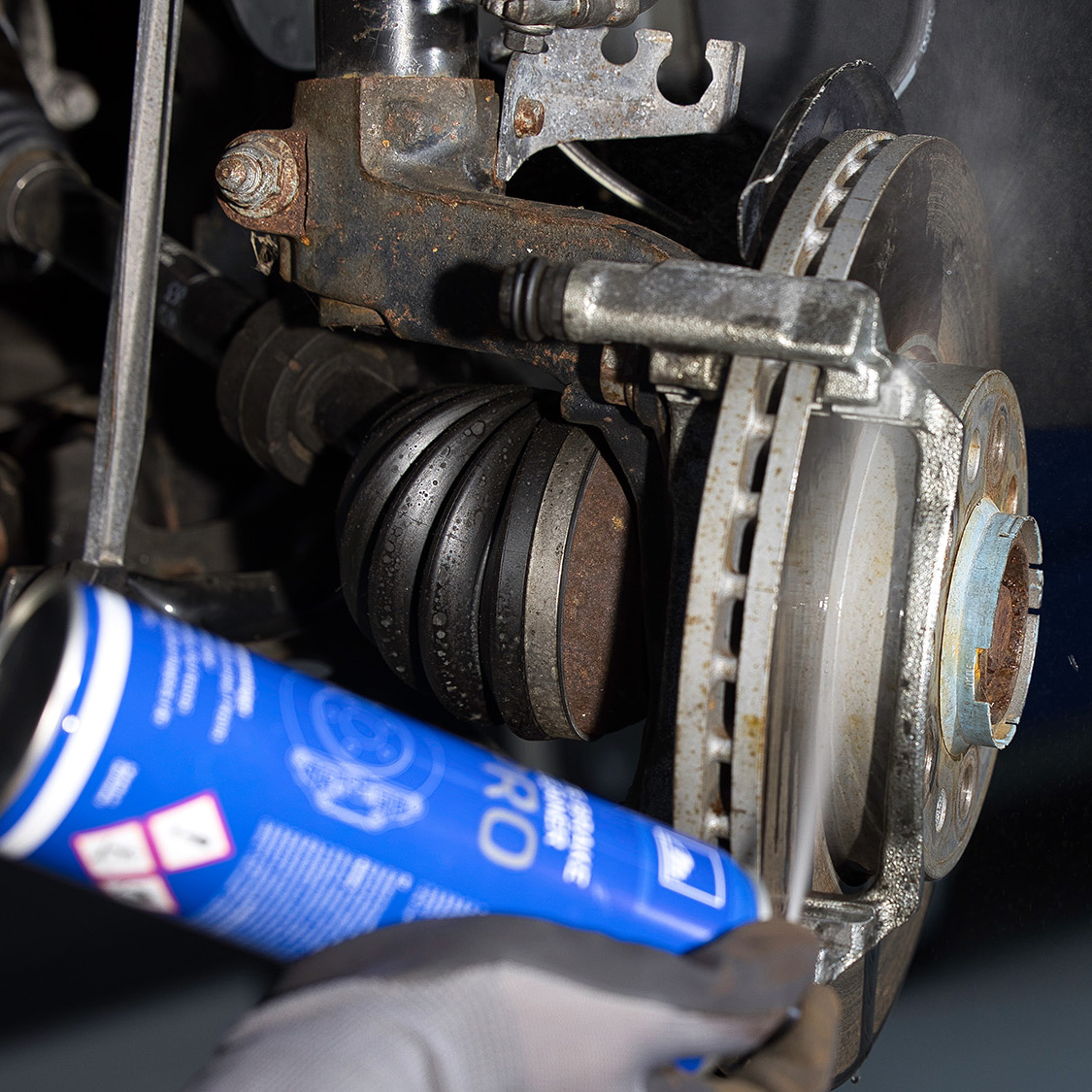 Brake parts are often exposed to heavy contamination, which can make repairs difficult. Whether it's waxy rust protection, grease, or contamination from oils, fats, resins, silicones, and corrosion protection layers – the ATE Brake Cleaner PRO removes it all in no time. The high spray pressure and the practical overhead spray valve make the application particularly flexible and effective.